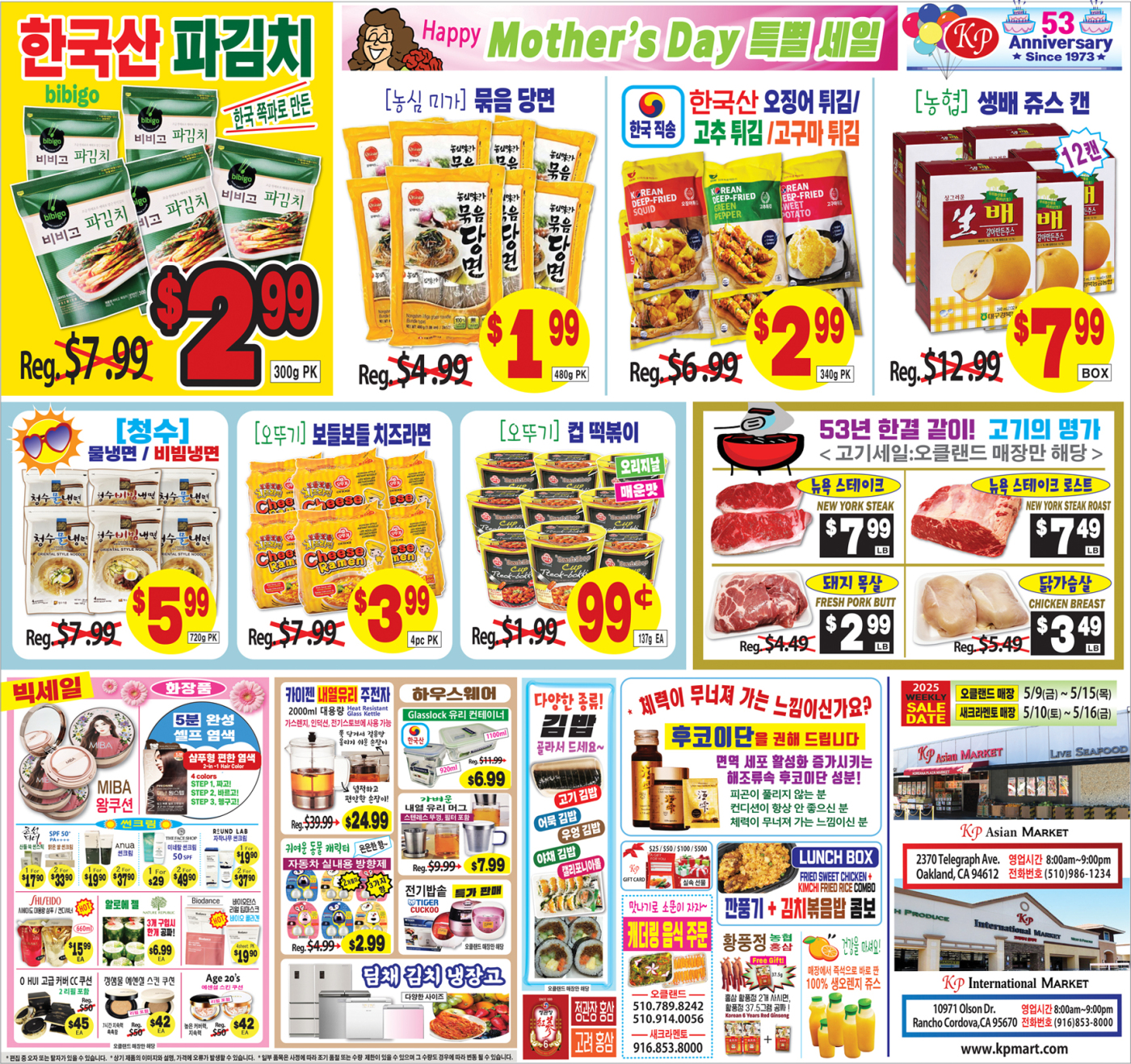 [샌프란시스코] 코리아나 플라자 KP 마켓 01/16 (금) ∼ 01/22 (목)